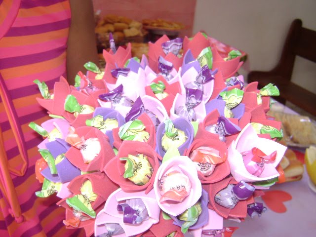 lembrancinha flor de pirulito, também usado como arranjo de mesa.